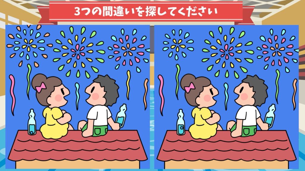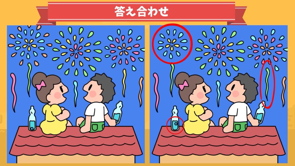 1つ目の間違いは、左の花火が小さくなっていました。