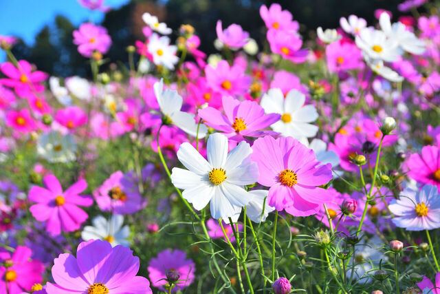 「秋桜」と書かれるため秋のイメージが強いですが、種類や地域によって6月から11月頃まで開花します。