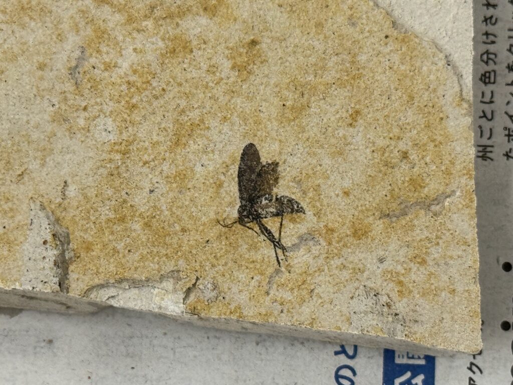 なんと、今日は4年生の人が虫の化石を発見しました。木の葉以外の化石は非常に珍しいです。調べてみると、「クロバネキノコバエ」ではないかと思います。