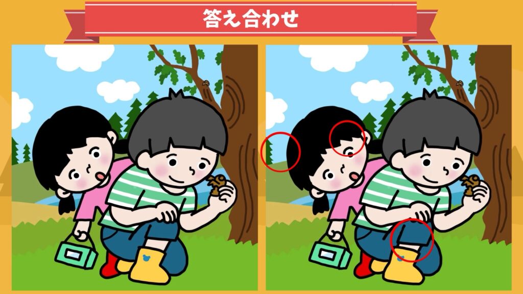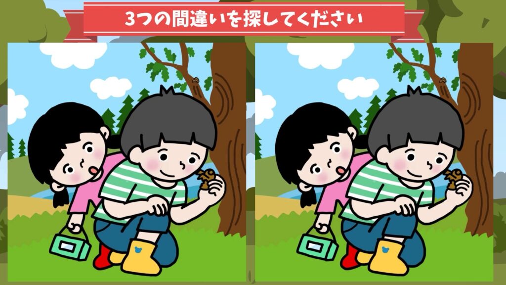 左右の絵の違うところを3つ見つけましょう。