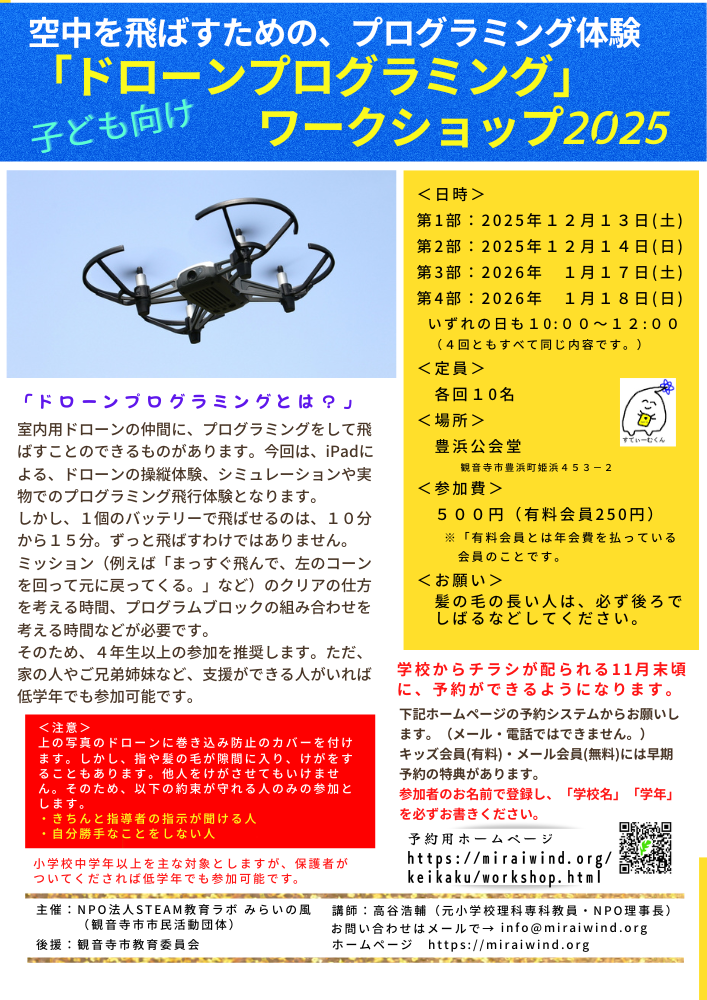 ドローンプログラミングワークショップ2は、いよいよ今日、明日です。