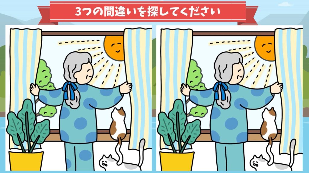 1つ目の間違いは、おばあちゃんのズボンの水玉模様が消えていました。