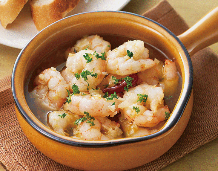 アヒージョは、スペイン語で「小さなニンニク」をいう意味の「Ajillo(アヒージョ)」が名前の由来であるスペインの代表的な小皿料理(タパス)のひとつです。 オリーブオイルとニンニクをベースに、魚介類や野菜などの具材を煮込んで作ります。