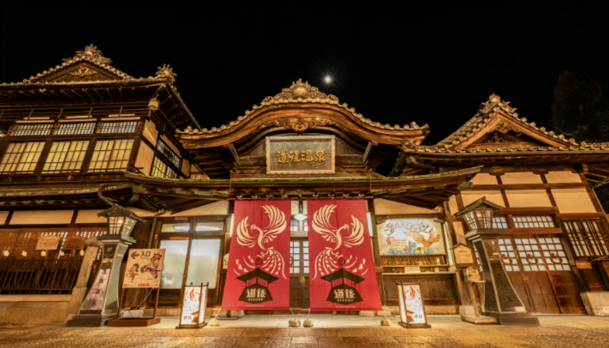 道後温泉は、傷を負った白鷺(しらさぎ)が湯あみして元気になったことが起源とされています。神話時代にはオオクニヌシとスクナヒコナ、飛鳥時代の聖徳太子や斉明天皇をはじめとする貴人も来浴したといいます。