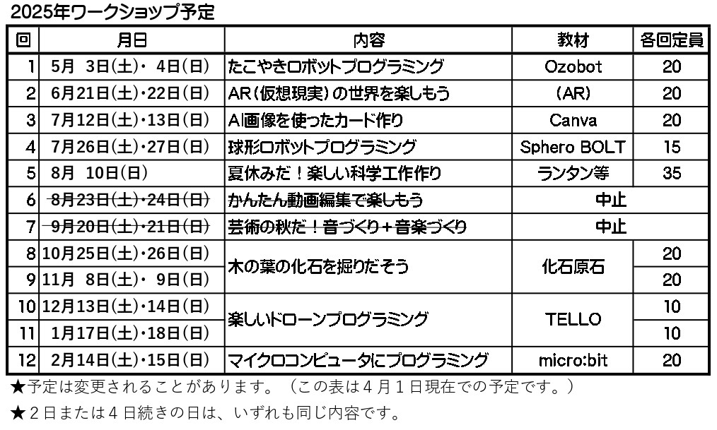 2025年度(令和7年度)活動計画(変更の可能性があります。)